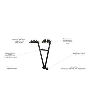 The soft cradles and rubber straps allow an easy attachment of the bikes without damaging the paint. The cradles can be tightened to the rack. The cradles are made a a hard and a soft part to protect the bike frame.